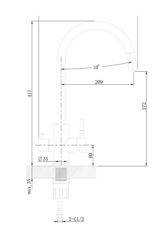 • Высота смесителя: