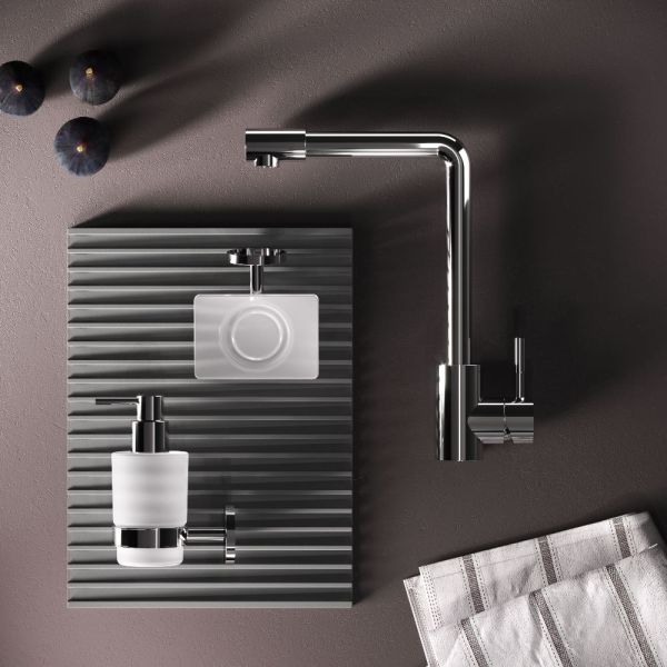 L-образная архитектура смесителя идеально подойдет для использования с мойкой любого размера и значительно упростит такие задачи, как наполнение больших емкостей.