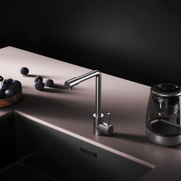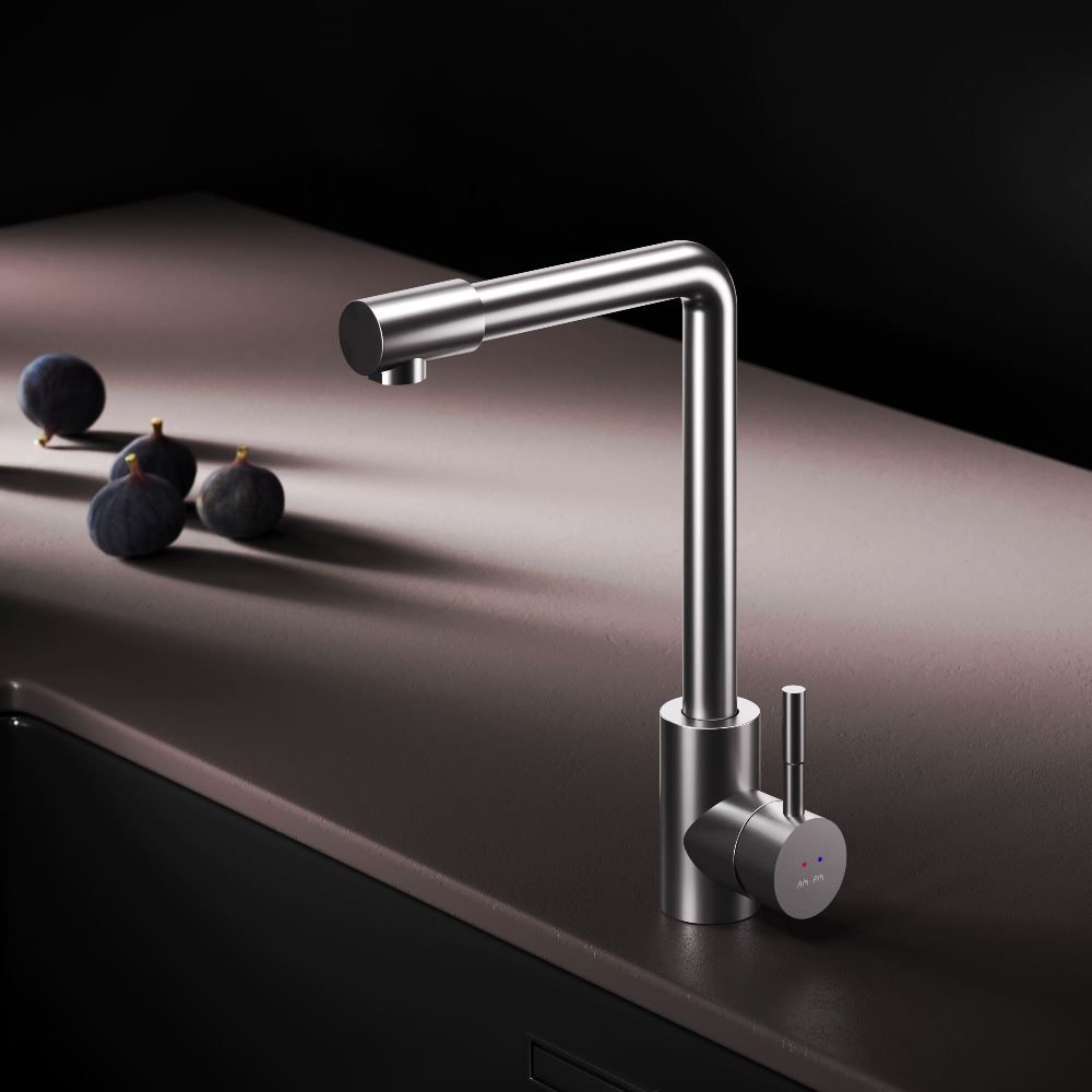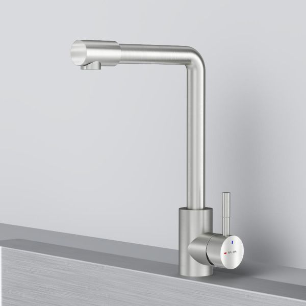 L-образная архитектура смесителя идеально подойдет для использования с мойкой любого размера и значительно упростит такие задачи, как наполнение больших емкостей. Сатиновый цвет сделает этот смеситель главным акцентом в любом интерьере.