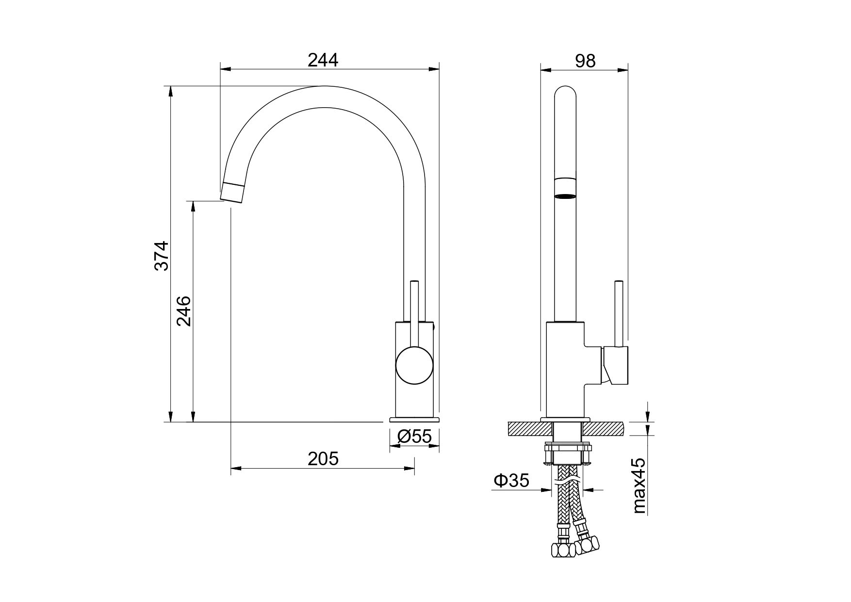 Высота излива (см): 25,1Длина излива (см): 20,4Аэратор: Neoperl, ШвейцарияГибкая подводка в комплектеДлина гибкой подводки (см): 60Тип резьбового соединения: M10Стандарт подводки: 1/2"Вращение излива: поворотный, вращение на 360°Тип управления: рычажныйНазначение: для кухонной мойкиКоличество монтажных отверстий: 1 отверстиеПодключение к системе водоснабжения: гибкая подводкаМеханизм: керамический картридж Citec, ИспанияДиаметр картриджа (мм): 35