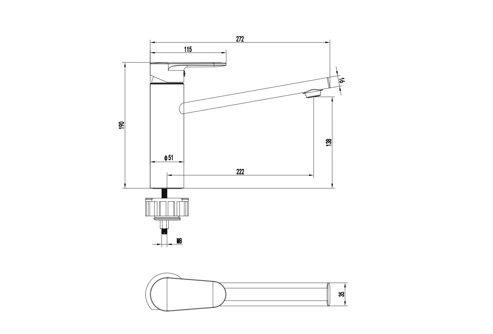 Длина излива (см): 22,2