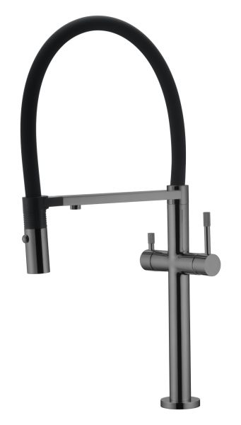 Смеситель для кухни Boheme Uno 115-SGM с краном для питьевой воды антрацит глянец