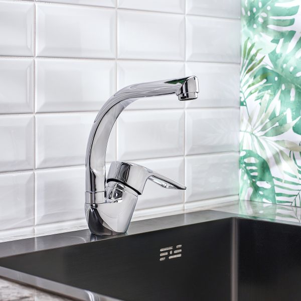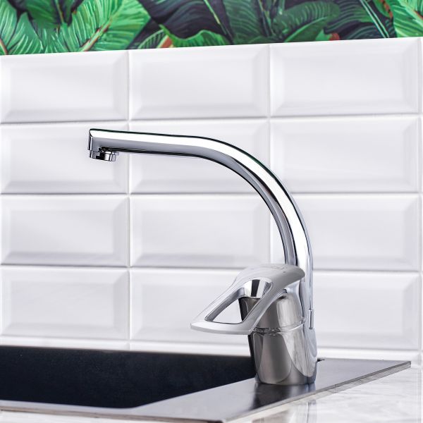 Однорычажный смеситель ТМ BOOU это модель, которая украсит любую кухню. Рычаг удо-бен для захвата одной рукой и поворачивается плавно, что позволяет максимально точно настроить температуру и напор струи. Г-образный поворотный излив предназначен для обо-рудования любой раковины.