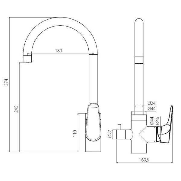 Смеситель для кухни Damixa Merkur 400730000 высокий хром купить