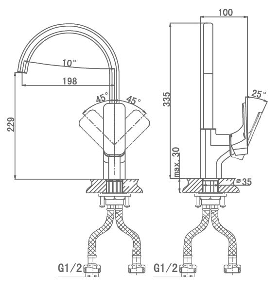 • Высота смесителя: