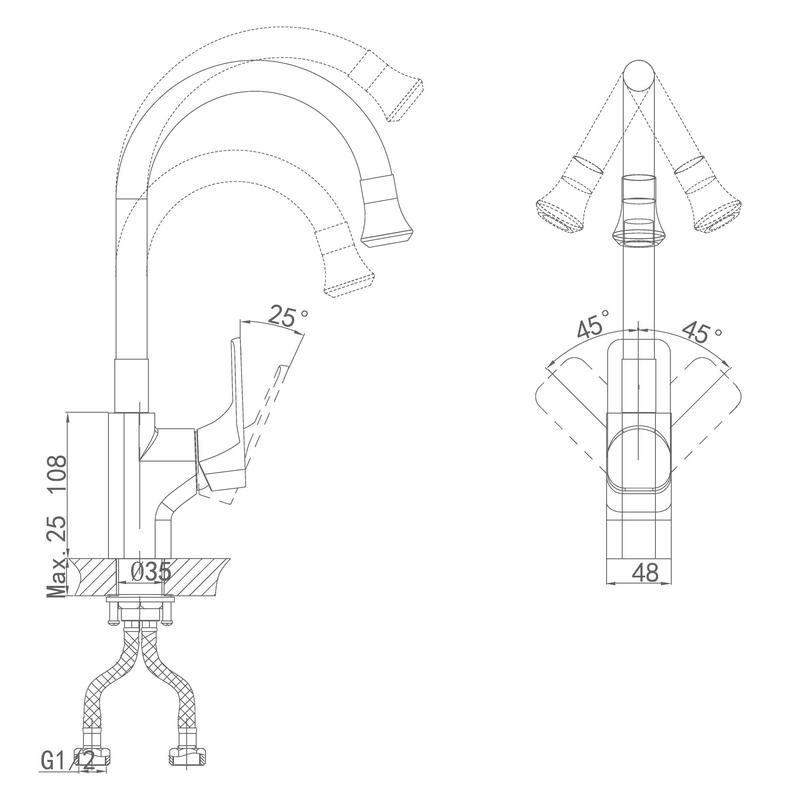 • Высота смесителя: