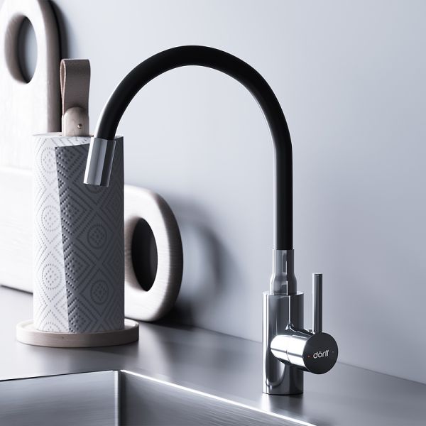 Главная особенность этого кухонного смесителя – гибкий излив, который наделен эффектом памяти. При помощи этого вы имеете возможность двигать смеситель в различных направлениях, наполнять емкости любой высоты, в то время как он сохранит заданное положение. Гибкий излив имеет приятную на ощупь поверхность, легко моется и сохраняет привлекательный вид даже после долгого использования. Основной материал - высококачественная нержавеющая сталь - обеспечит долгий срок эксплуатации смесителя. Стильная эргономичная ручка-стик удобна в использовании, легко моется и завершает современный дизайн смесителя. Актуальное цветовое решене - хром/черный и хром/белый впишется в любой интеръер. Для экономии расхода воды в смеситель установлен аэратор, который насыщает струю воды воздухом обеспечивая хороший напор даже при низком давлении в системе. Помимо этого, в моделе прослеживается немецкая педантичность и продуманность в деталях: эргономичная ручка, поворотный излив, качественные комплектующие и внушительная гарантия!