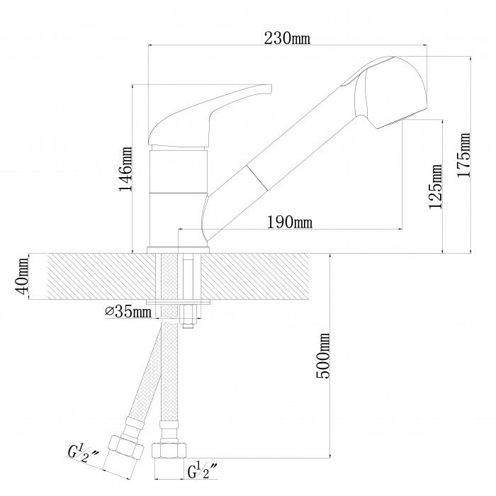 • Высота смесителя: