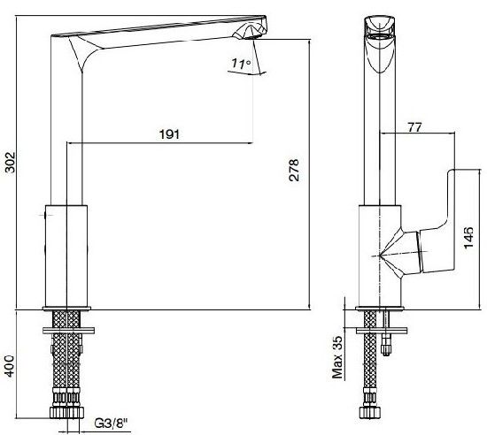 • Высота смесителя: