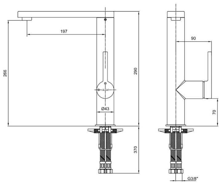 • Высота смесителя: