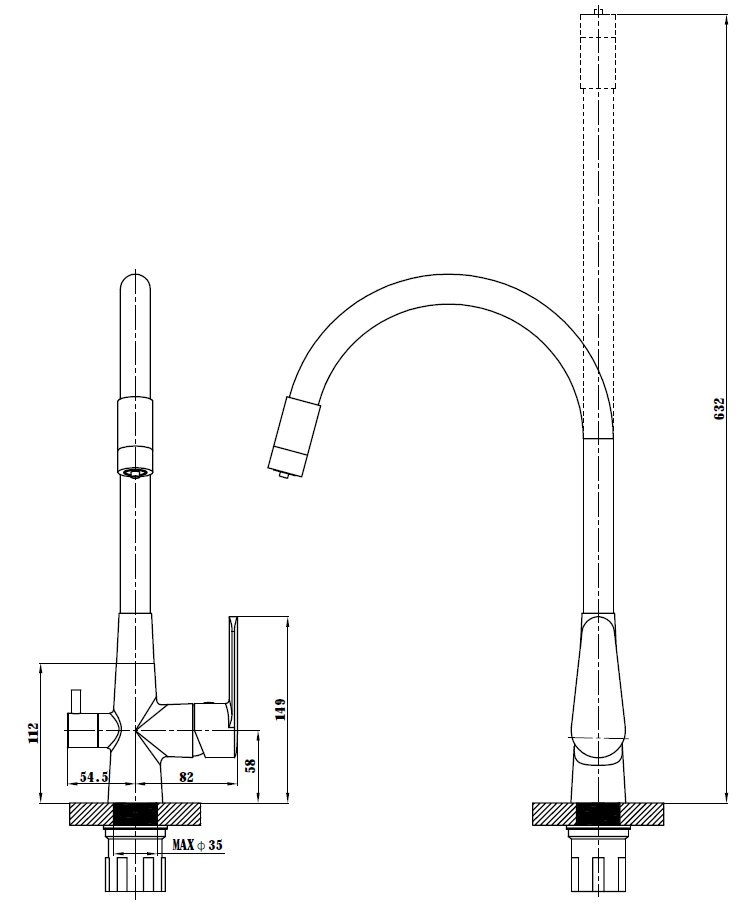 • Высота смесителя: