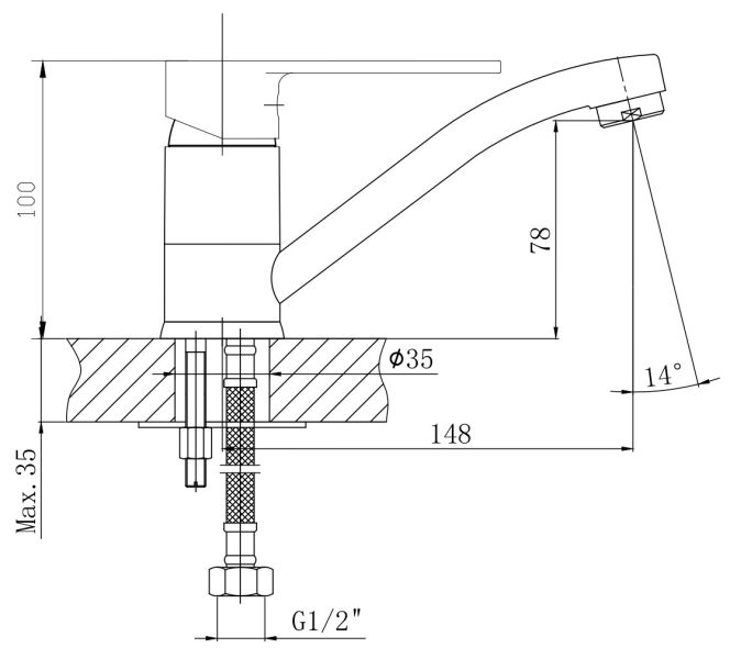 • Высота смесителя: