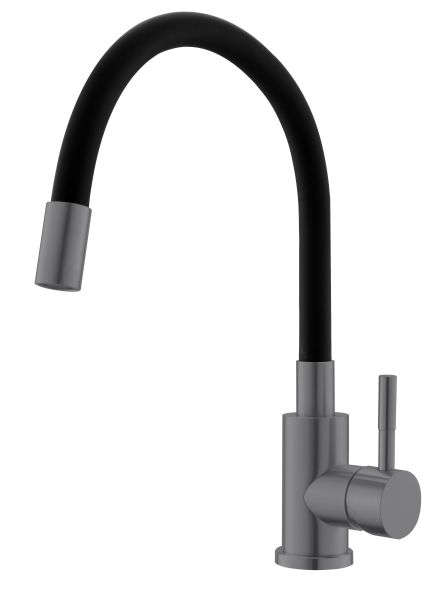 Смеситель для кухни ESKO Snake K44Grafit черный графитСмеситель Snake K44Grafit: Стильный смеситель "Snake" с гибким черным изливом 48 см в графитовом исполнении. Сочетание черного и графитового цветов создает эффектный вид. Удобная форма излива обеспечивает максимальный комфорт при использовании. Прочная конструкция из нержавеющей стали.