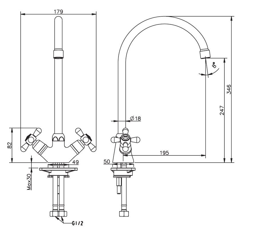 • Высота смесителя: