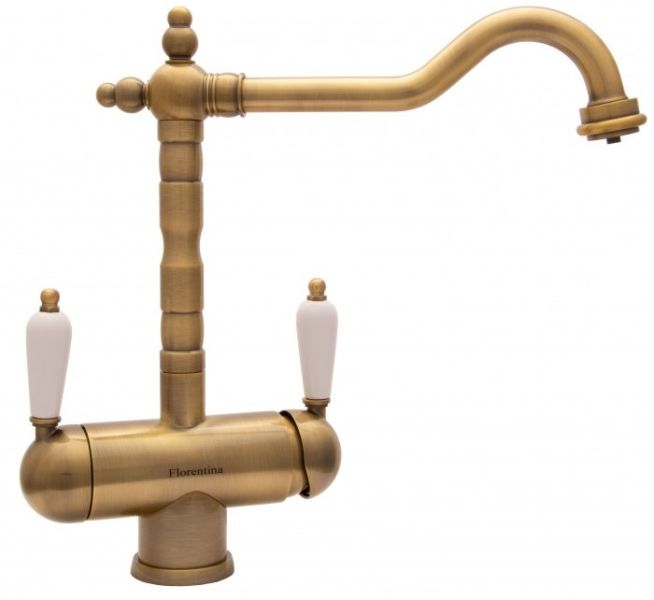 Смеситель для кухни Florentina Ария с подключением под фильтр бронза купить