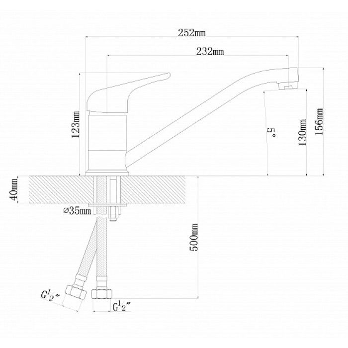 • Высота смесителя: