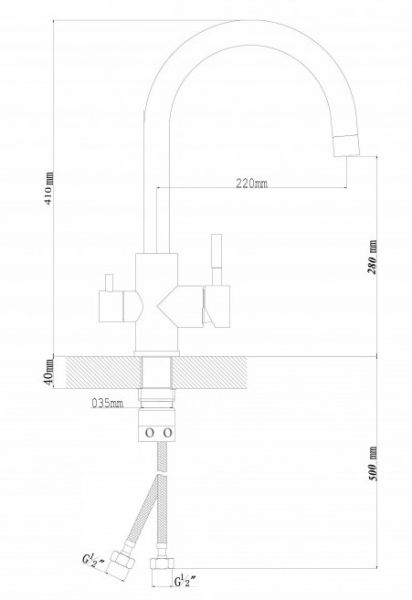 Смеситель для кухни Florentina Клио с подключением под фильтр нержавеющая сталь