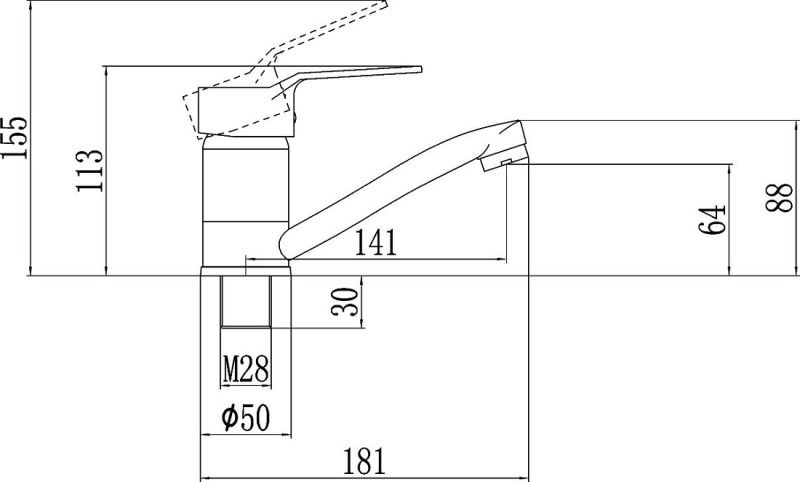 • Высота с поднятым рычагом: 155 мм