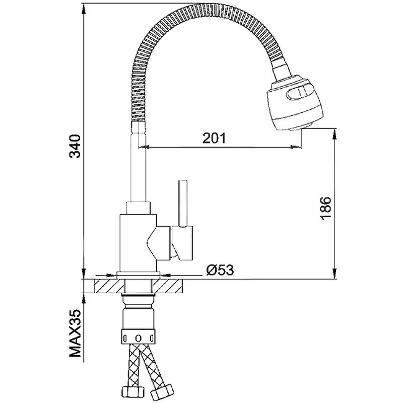 • Высота смесителя: