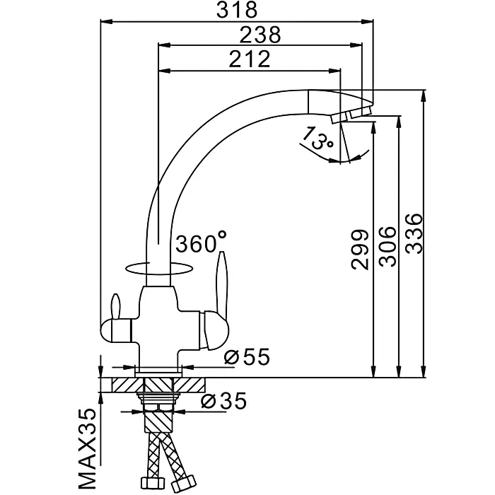 • Гибкий излив: