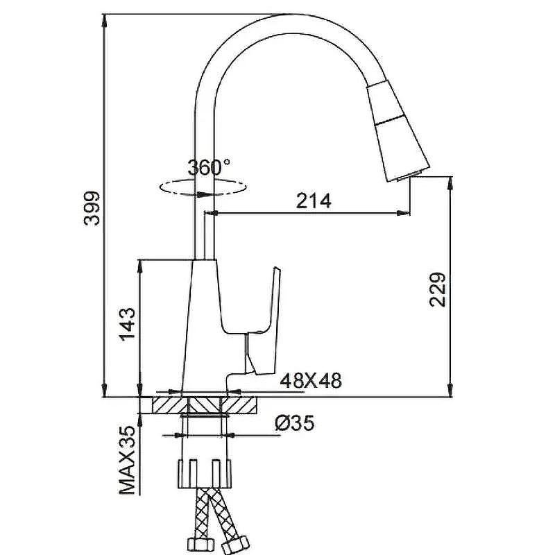 Смеситель для кухни Frap H71 F4471 с гибким изливом. Характеристики: