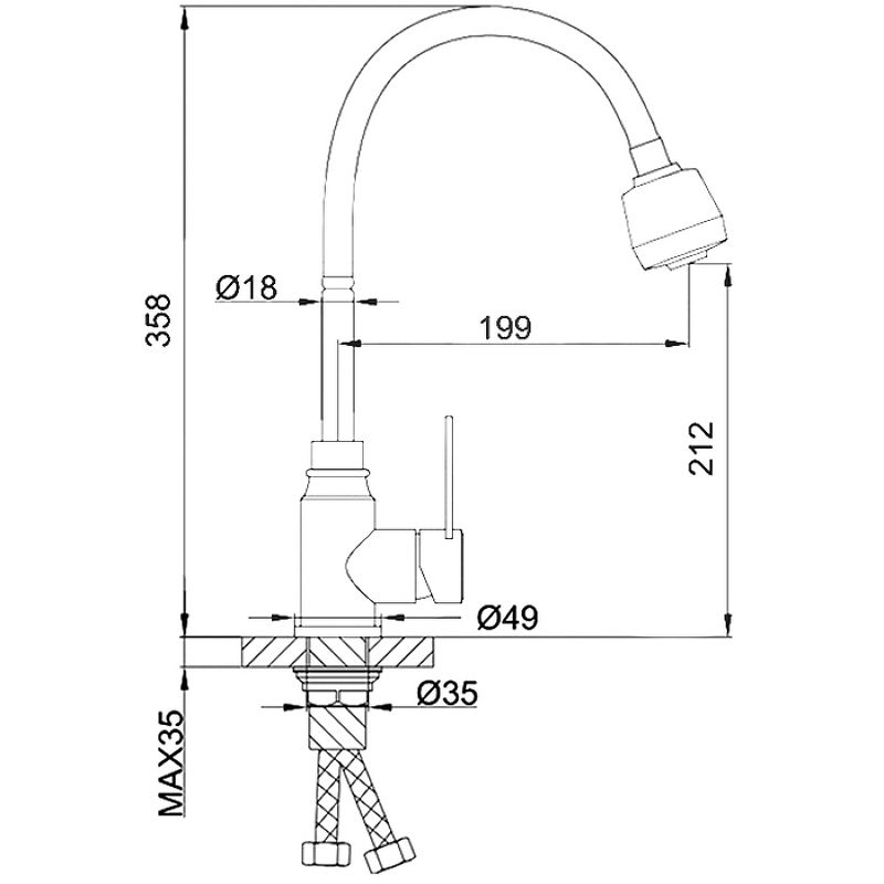 • Высота смесителя: