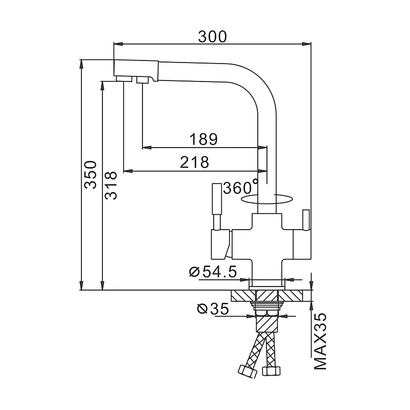 • Высота смесителя: