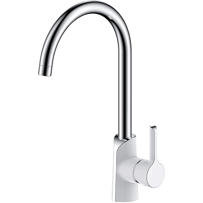Cмеситель для кухонной мойки Gappo G4003-8 - классическая однорычажная модель из латуни с высоким изливом, что делает ее использование максимально удобным и комфортным. Однорычажное управление обеспечивает плавную настройку температуры и регулировку напора воды. Имеет испанский керамический картридж Sedal 35 мм. Цвет - хром / белый.