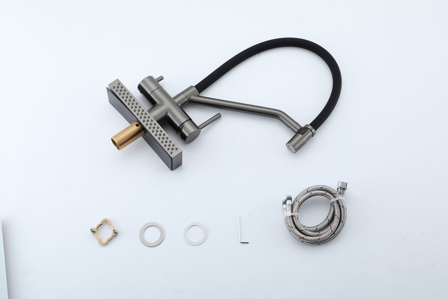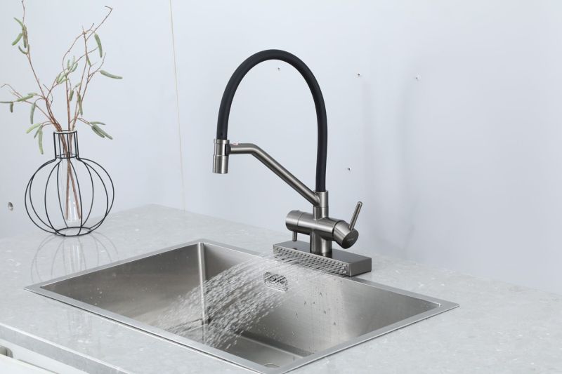 Смеситель для кухни Gappo G4098-9 с водопадом и гибким изливом оружейная сталь