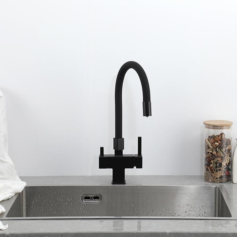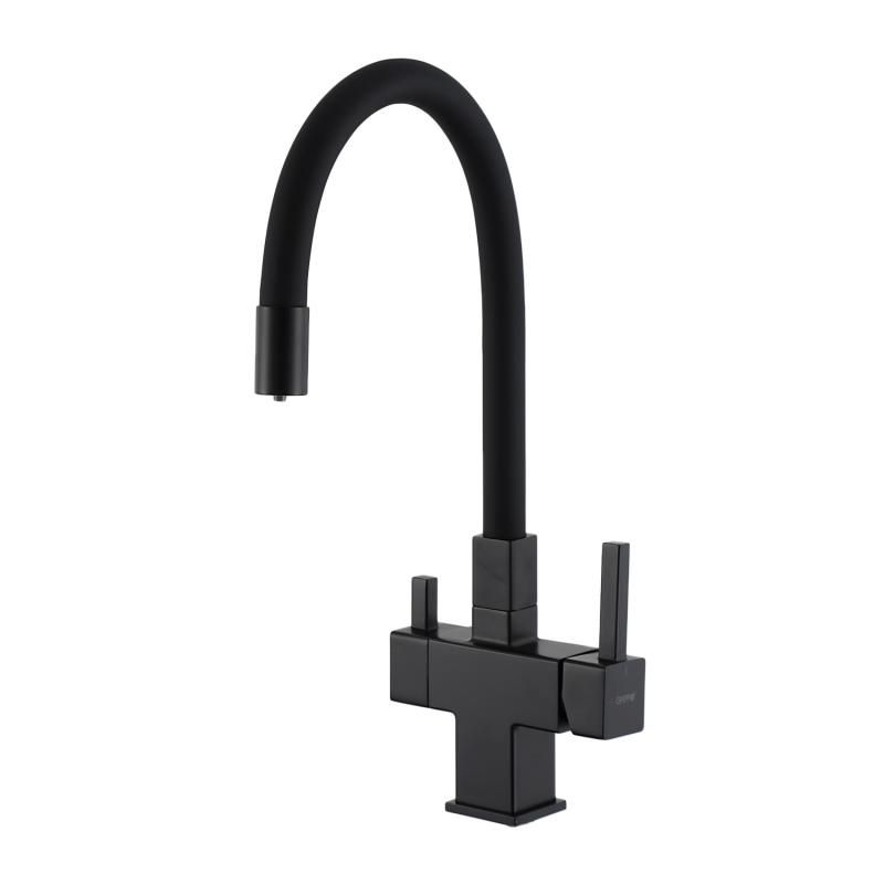 Смеситель для кухни Gappo G4395-36 с подключением фильтра питьевой воды и гибким изливом чёрный