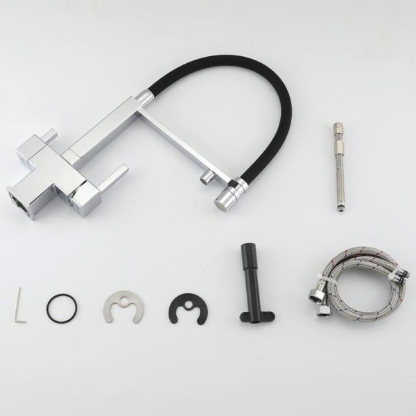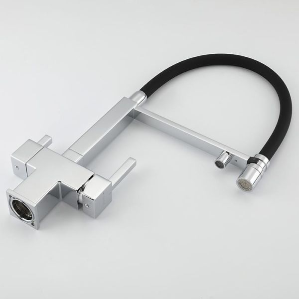 Смеситель для кухни Gappo G4395-50 с подключением фильтра питьевой воды и гибким изливом хром/чёрный