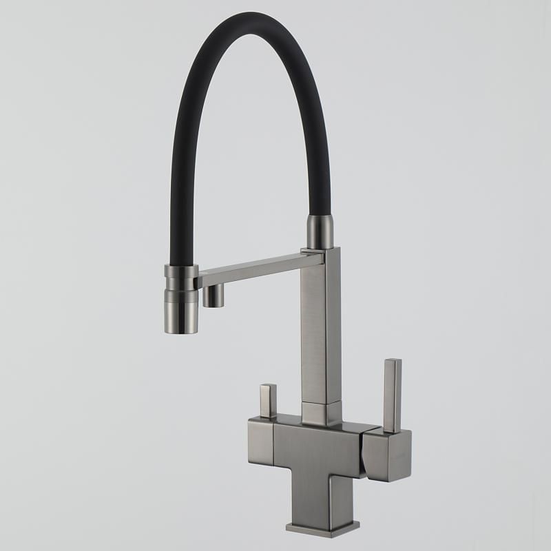 Смеситель для кухни Gappo G4395-59 с подключением фильтра питьевой воды и гибким изливом оружейная сталь/чёрный
