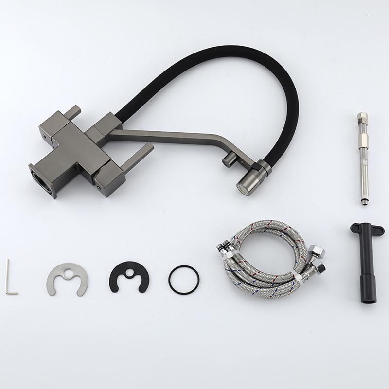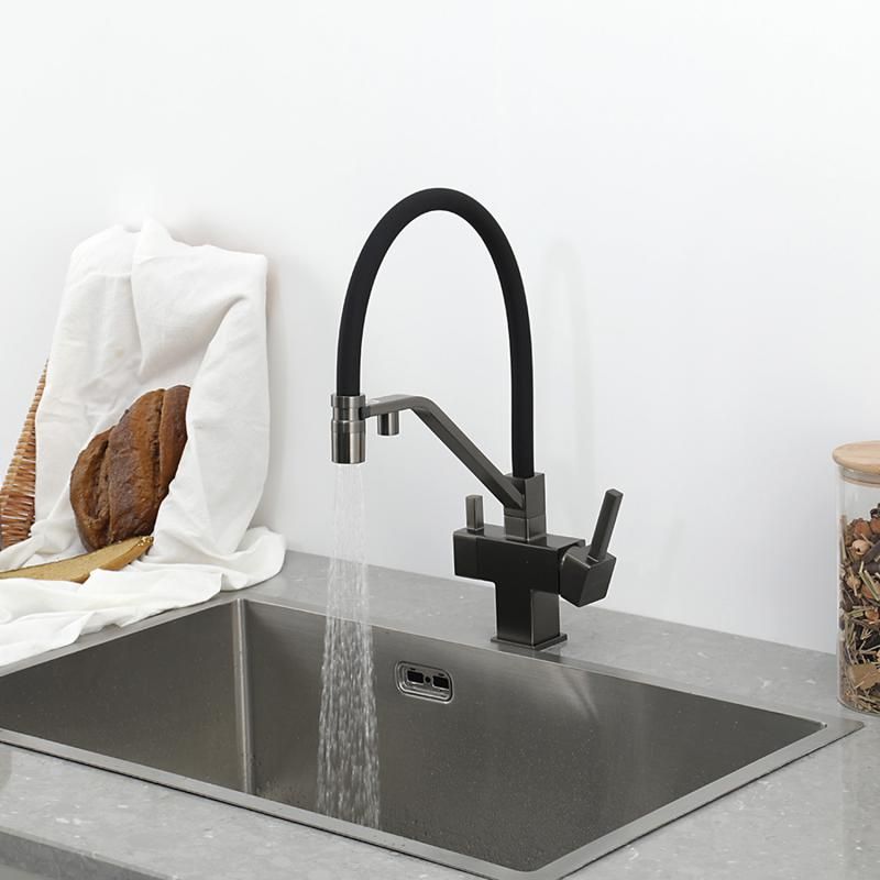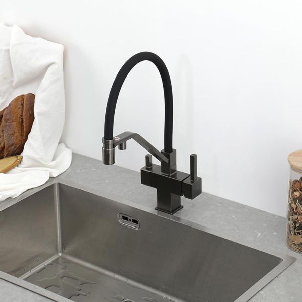 Смеситель для кухни Gappo G4395-69 с подключением фильтра питьевой воды и гибким изливом оружейная сталь/чёрный