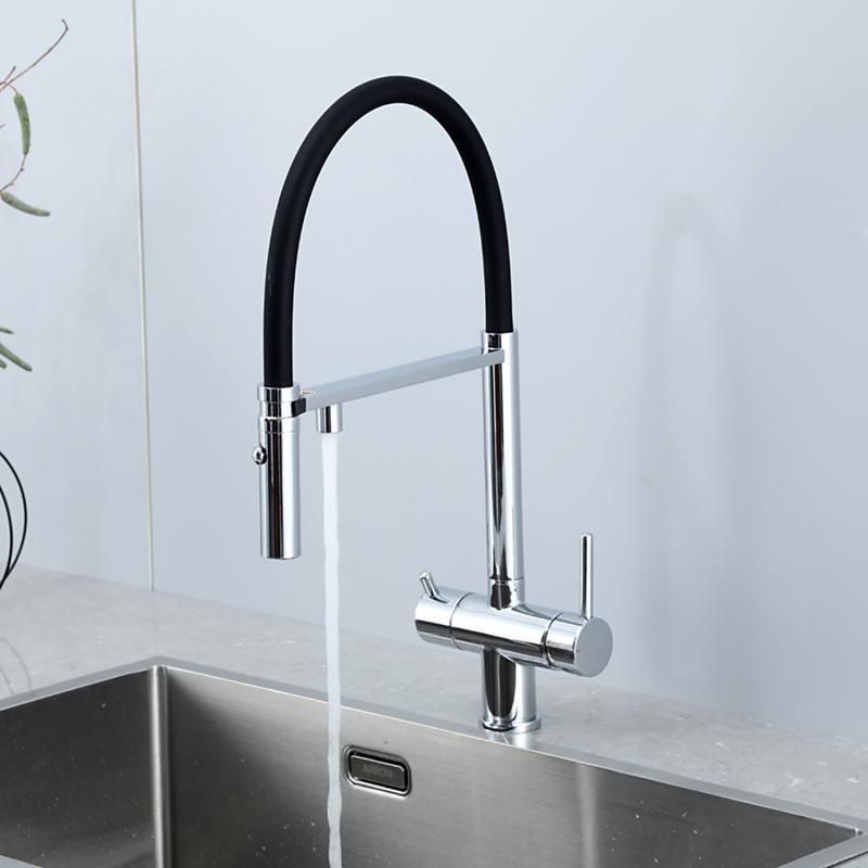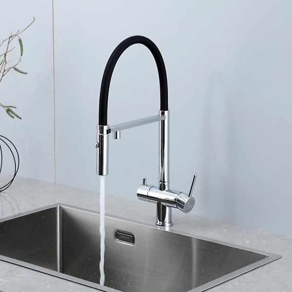 Смеситель для кухни Gappo G4397-80 с подключением фильтра питьевой воды и гибким изливом хром/чёрный