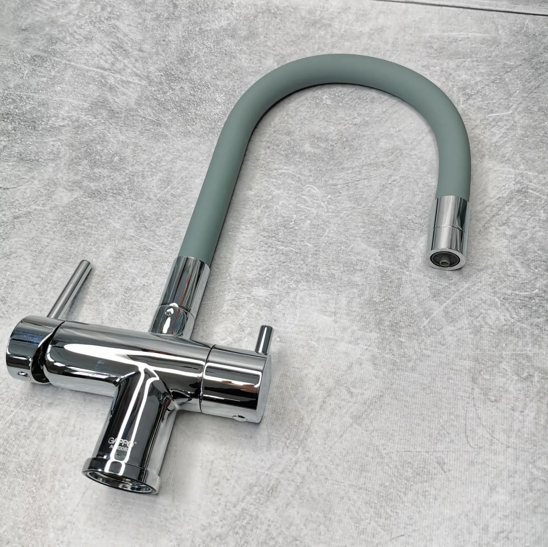 Cмеситель для кухонной мойки Gappo G4398-30 с подключением фильтра питьевой воды - однорычажный смеситель из латуни с хромированным покрытием и гибким изливом из силикона. Смеситель подключается к системе очистки воды.