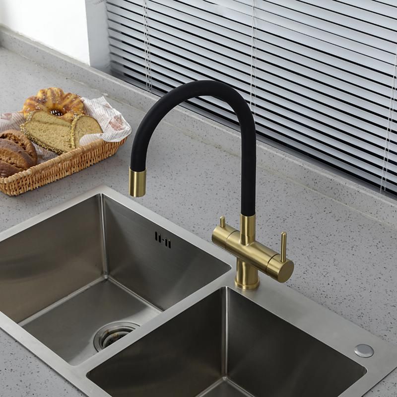Смеситель для кухни Gappo G4398-33 под фильтр с гибким изливом чёрный/золото