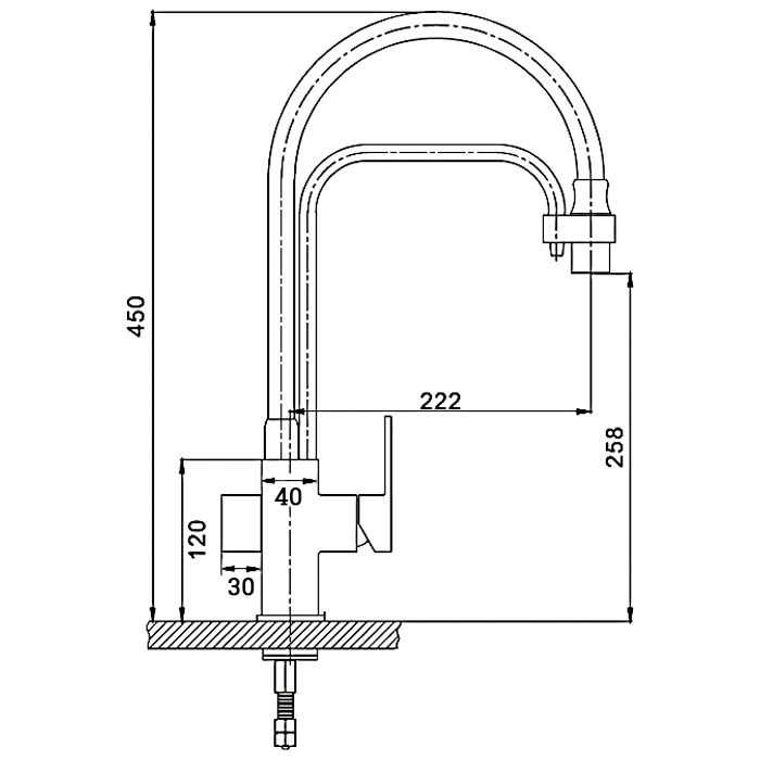 • высота смесителя: 450 мм