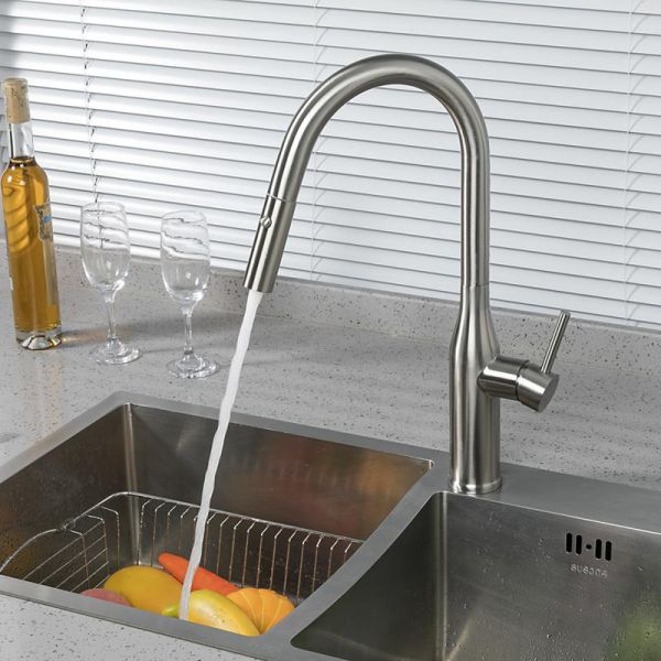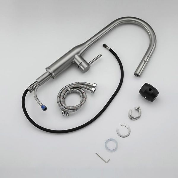 Смеситель для кухонной мойки Gappo G4398-45 с выдвижным изливом - однорычажный смеситель из нержавеющей стали с отделкой "сатин". Смеситель оснащен переключателем режимов струя / душ, и утяжелителем для фиксации излива на корпусе по окончании работы.