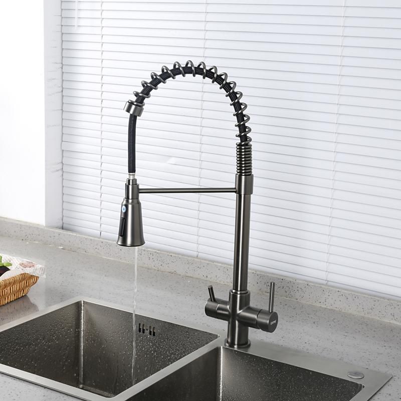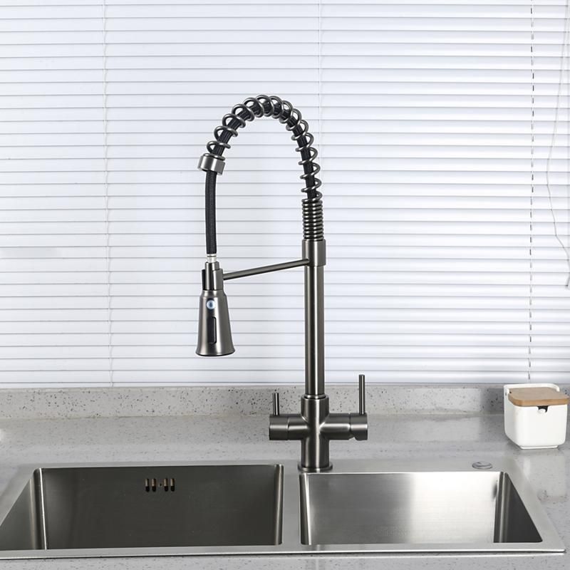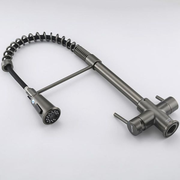 Смеситель для кухни Gappo G4398-69 с гибким выдвижным изливом и подключением фильтра питьевой воды оружейная сталь купить