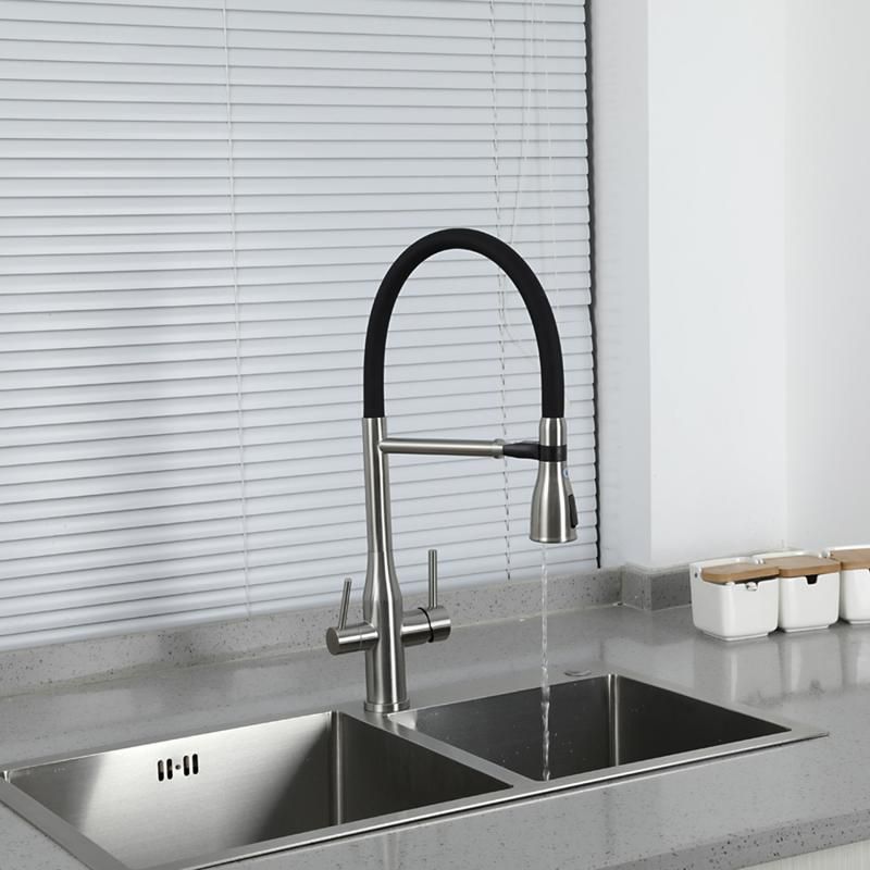 Смеситель для кухни Gappo G4399-75 с гибким изливом и подключением фильтра питьевой воды сатин/чёрный