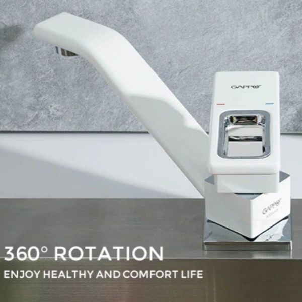 Cмеситель для кухонной мойки Gappo G4517-8 - надежная однорычажная модель из латун. Цвет - белый с хромированными вставками.