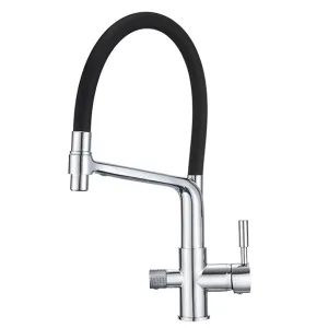 Смеситель для кухни. Цвет-хром. В комплект поставки входит: смеситель, гибкая подводка, комплект креплений, переходник для подключения фильтра с питьевой водой