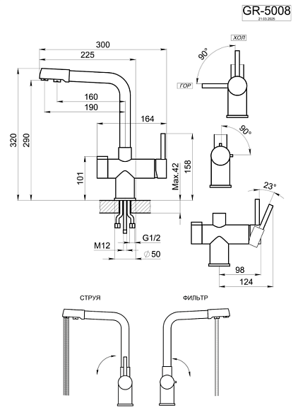 • Выдвижной излив: