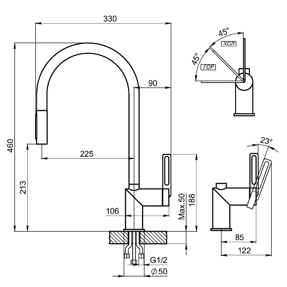 Высота смесителя:46