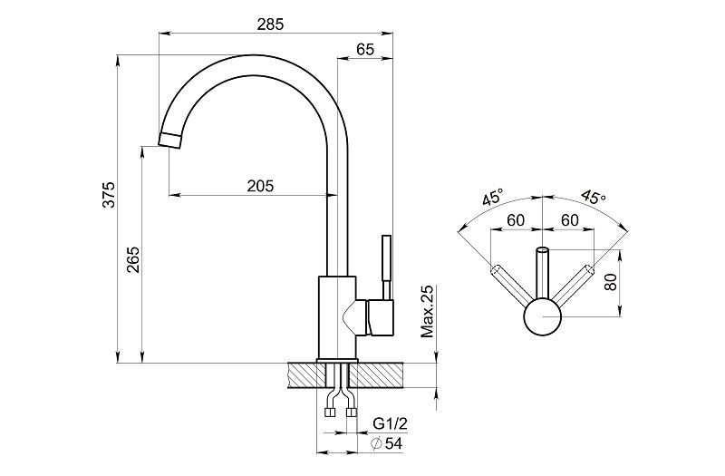 Смеситель для кухни Granula Standart ST-4031, АЛЮМИНИУМ