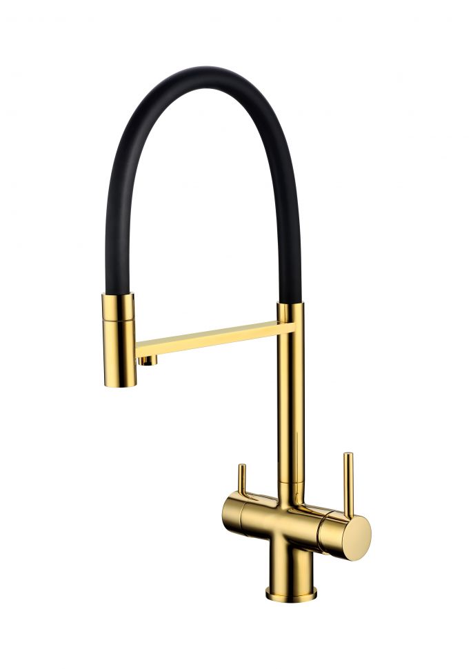 Смеситель для кухни Grocenberg GB4099 с гибким изливом Золото