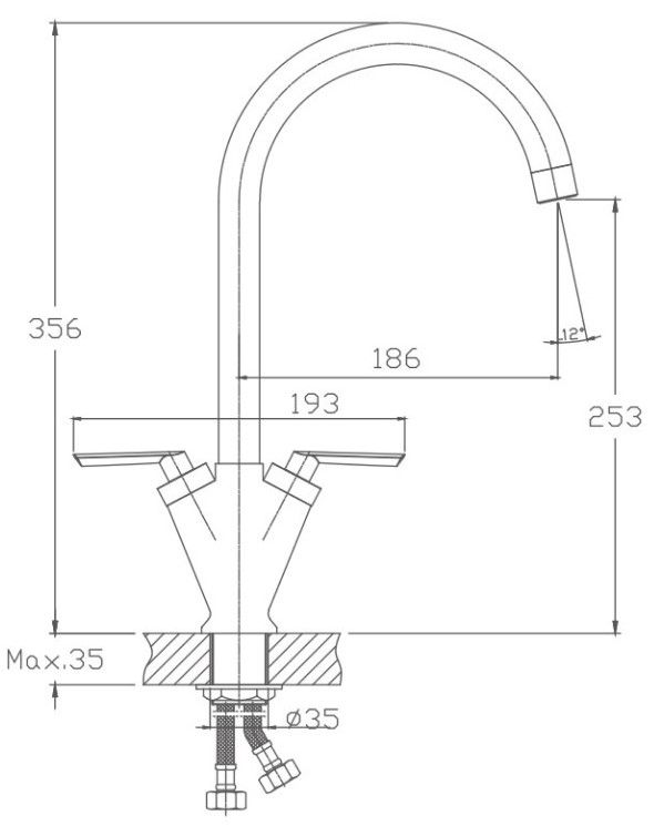 Смеситель для кухни бренда Haiba.Изготовлен из латуни.Укомплектован аэратором.Гибкая подводка 40 см.С поворотным изливом.