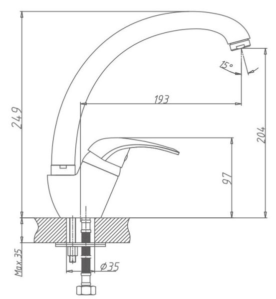 Смеситель для кухни бренда Haiba.Изготовлен из латуни.Картридж 40 мм.Укомплектован аэратором.Гибкая подводка 40 см.С поворотным изливом.
