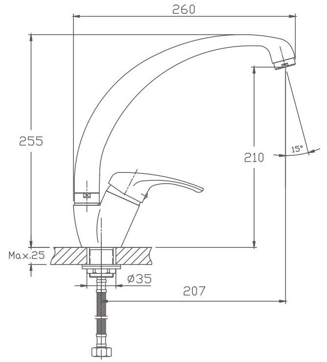Смеситель для кухни бренда Haiba.Изготовлен из латуни.Картридж 35 мм.Укомплектован аэратором.Гибкая подводка 40 см.С поворотным изливом.
