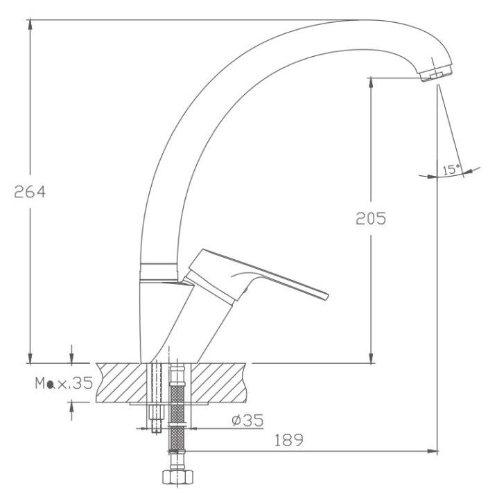 Смеситель для кухни бренда Haiba.Изготовлен из латуни.Картридж 35 мм.Укомплектован аэратором.Гибкая подводка 40 см.С поворотным изливом.